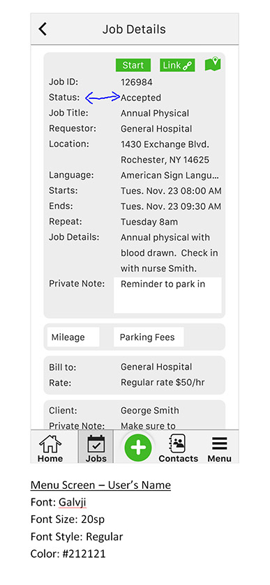 This is a sample of a style guide for one of the many screens within the app. The developers used this for typography, colors, and the overall look & feel.